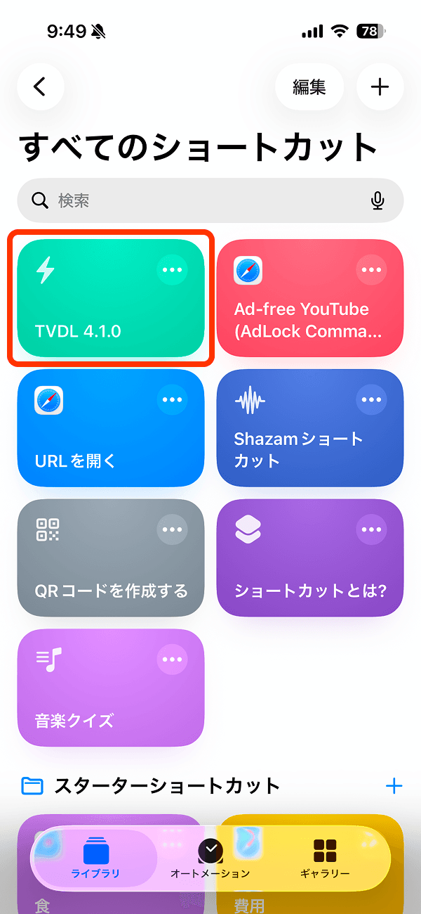 「ショートカット」アプリに切り替わり、「TVDL」が表示されたら、準備完了です。